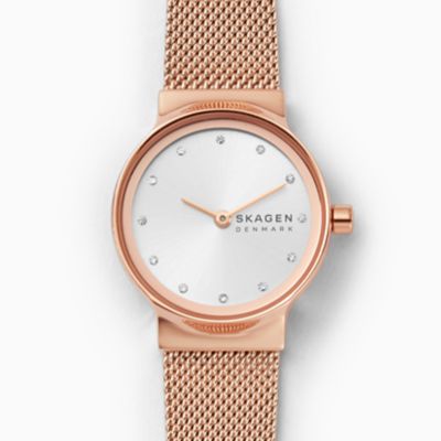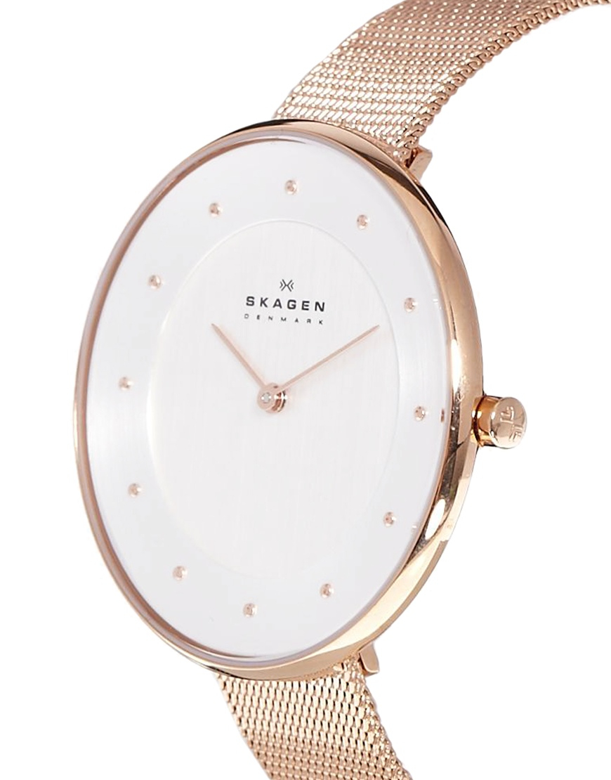 Their timepieces are uniquely inspired from the natural elements that surround the fishing village of skagen, which the company is proudly named after. This example is a casual quartz watch with a trendy stainless steel mesh bracelet. Add skagen skw2715 freja silver watch to wishlist. Water resistant to 30 meters. Sign in or create an account. Skagen skw2665 freja rose gold watch. Genuine black leather watch band for skagen 533ltlm. Skagen women's skw2714 analog display analog quartz rose gold watch. Notify me out of stock. Skw2150) and other wrist watches at amazon.com. Genuine skagen 19mm black leather strap 355lslb, 358lslb. Skagen anita rose gold stainless steel watch $185. Skagen celebrates the danish way of life: