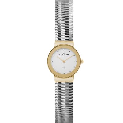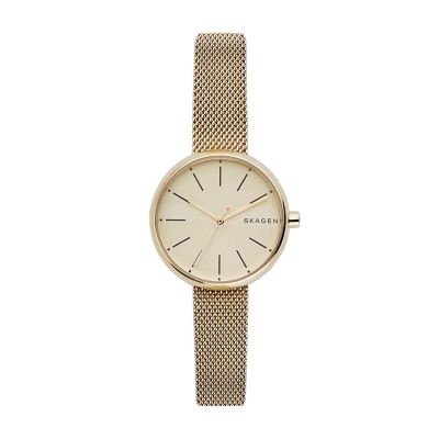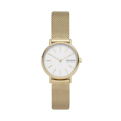 Skagen Gold Watch : Skagen Signatur Slim Two Tone Steel Mesh Women S Watch At Forzieri. Inspired by the timeless beauty of nature & available at skagen.com. Please note that because of the fact that skagen watches are very delicate and have the bands seamlessly fitted to the watch case, the watch bands often cannot be replaced by universal leather bands. 4.6 out of 5 stars 389. In 1987, henrik and charlotte jorst came to the united states from their native denmark to follow a dream: This collection features both men's and women's styles with something to suit any event.